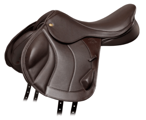 Enkelkåpad terrängsadel med knästöd av större modell samt vadstöd. Klädd helt i supergreppigt skinn och kommer med flera infästningspunkter för stropparna.