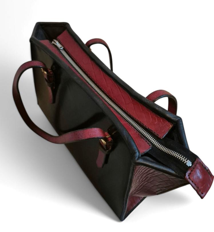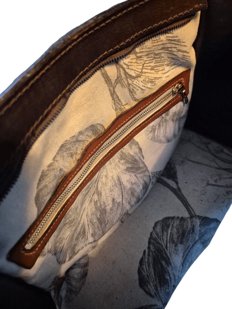Handväska i flera olika storlekar. Fastsytt foder, en innerficka samt blixtlås för att stänga väskan.