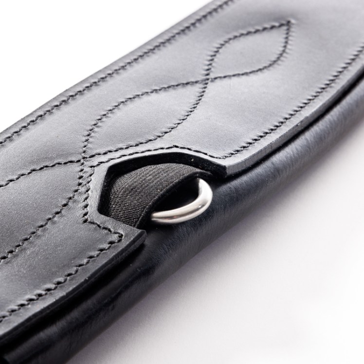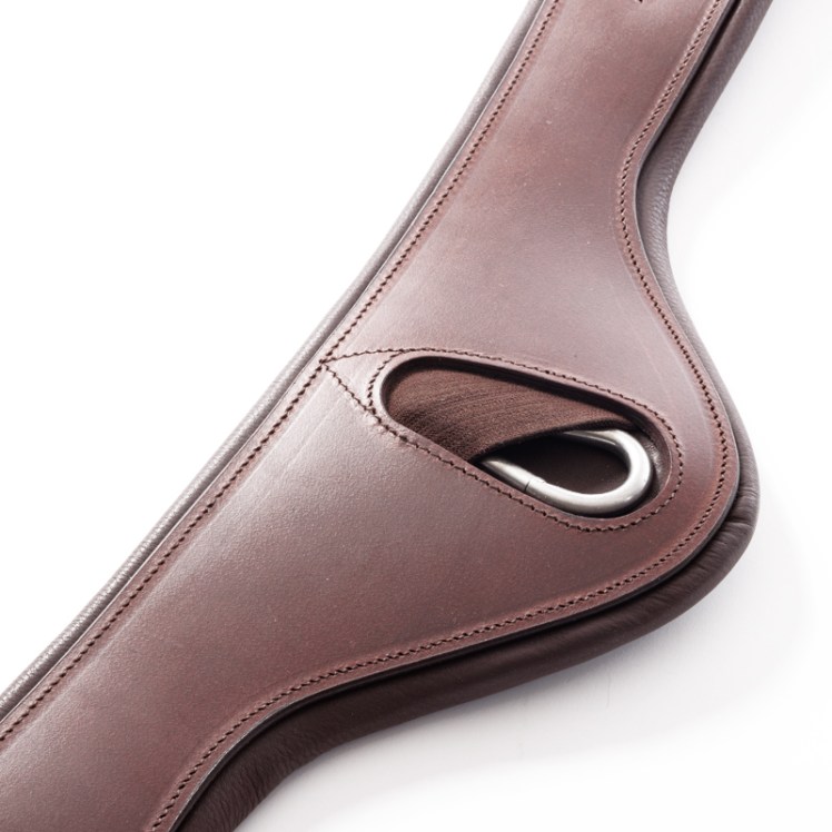 Svängd gjord i oljat läder för hästar med djup bröstkorg eller sadelgjordsläge längre fram än sadelläget.