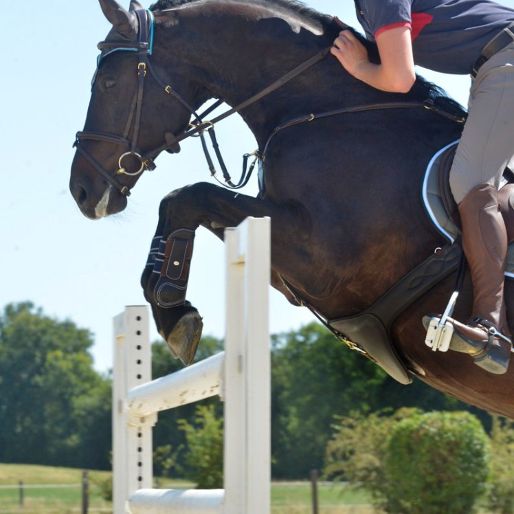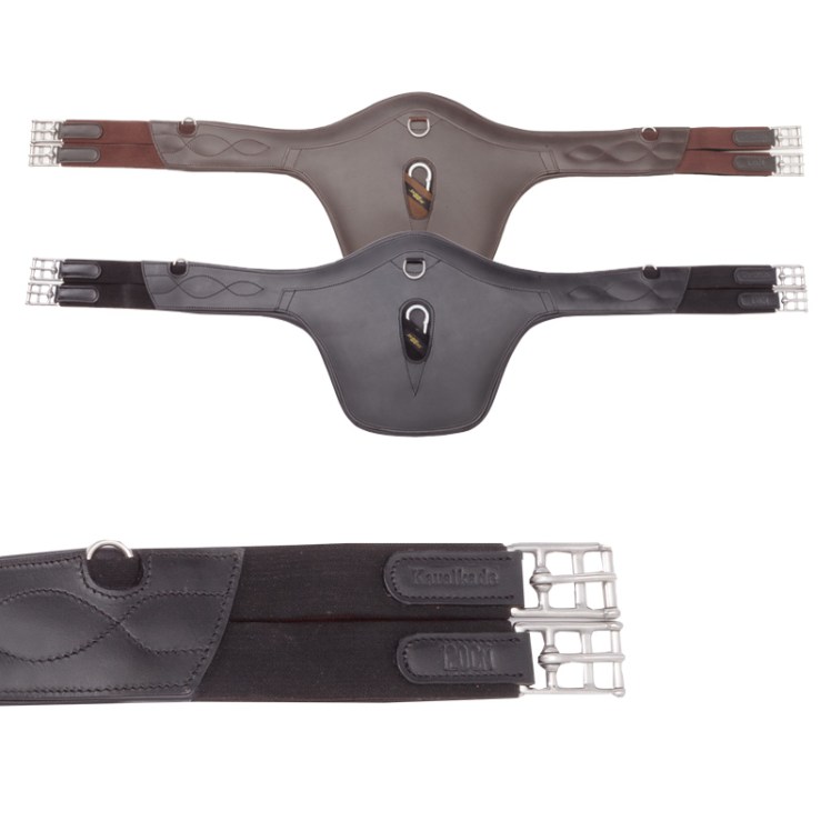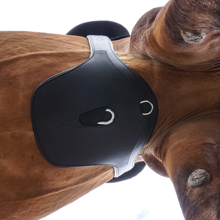 Magplatta i oljat läder, med mjuk fodring mot hästen. Anatomiskt skuren för att hästen ska kunna röra sig obehindrat.