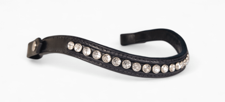 100% handsytt pannband med strass. Går att få med tryckknappar eller sydda öglor.