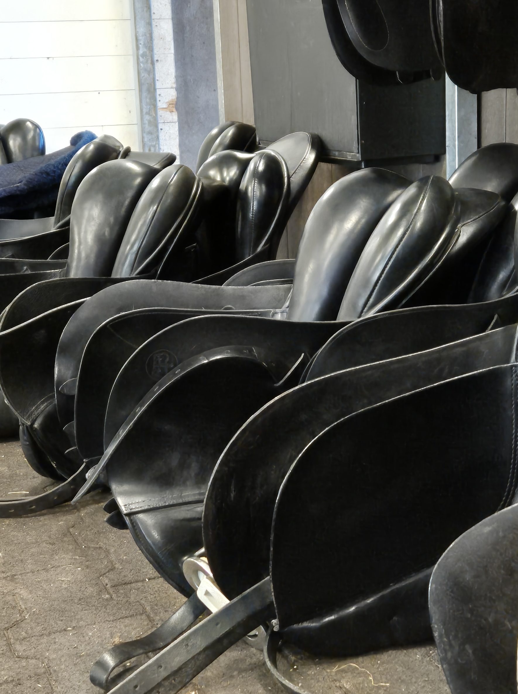Vid överlämning gör jag en yttre besiktning av sadeln. Bommen behöver vara hel och rak för att jag ska kunna ta emot den.