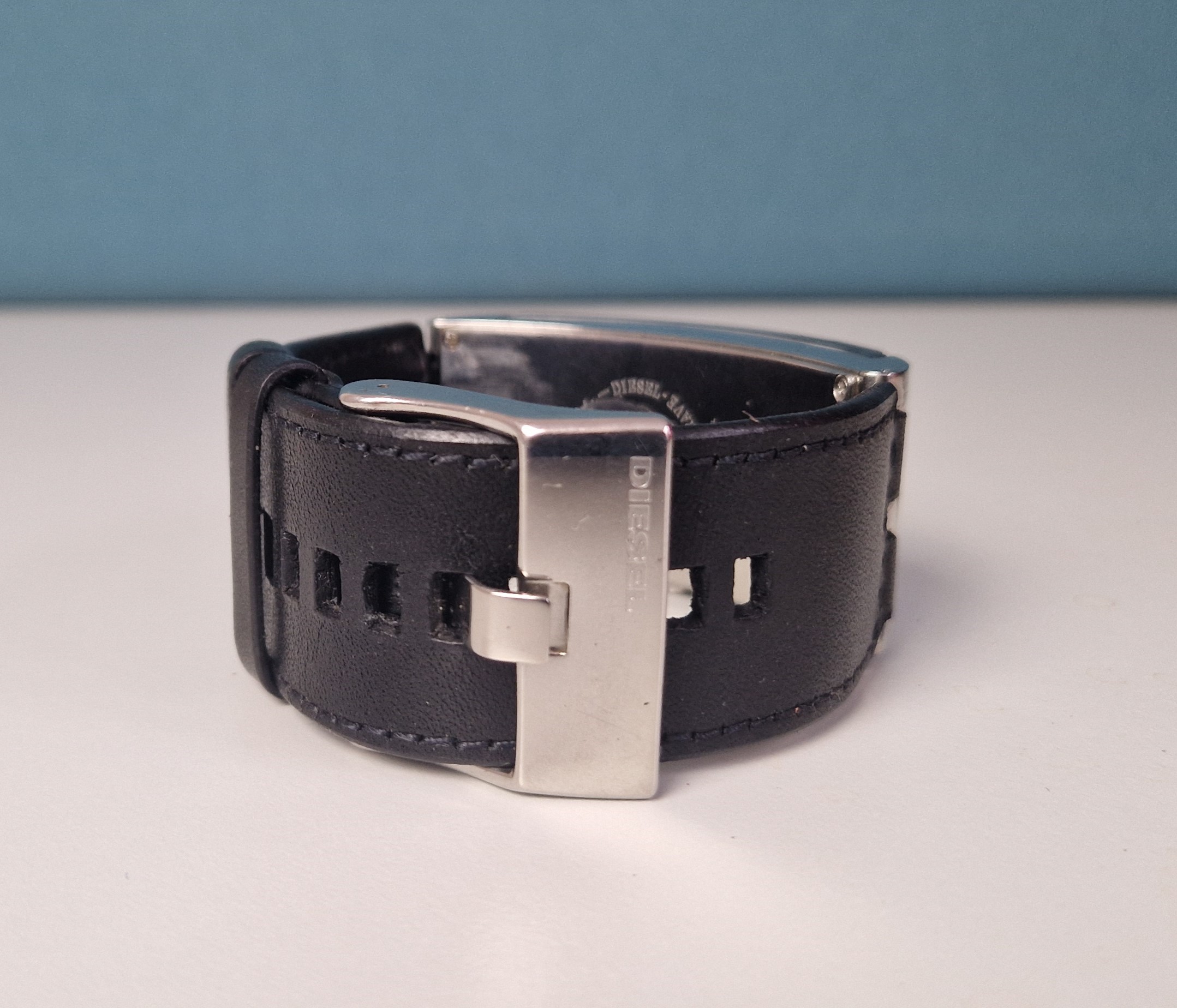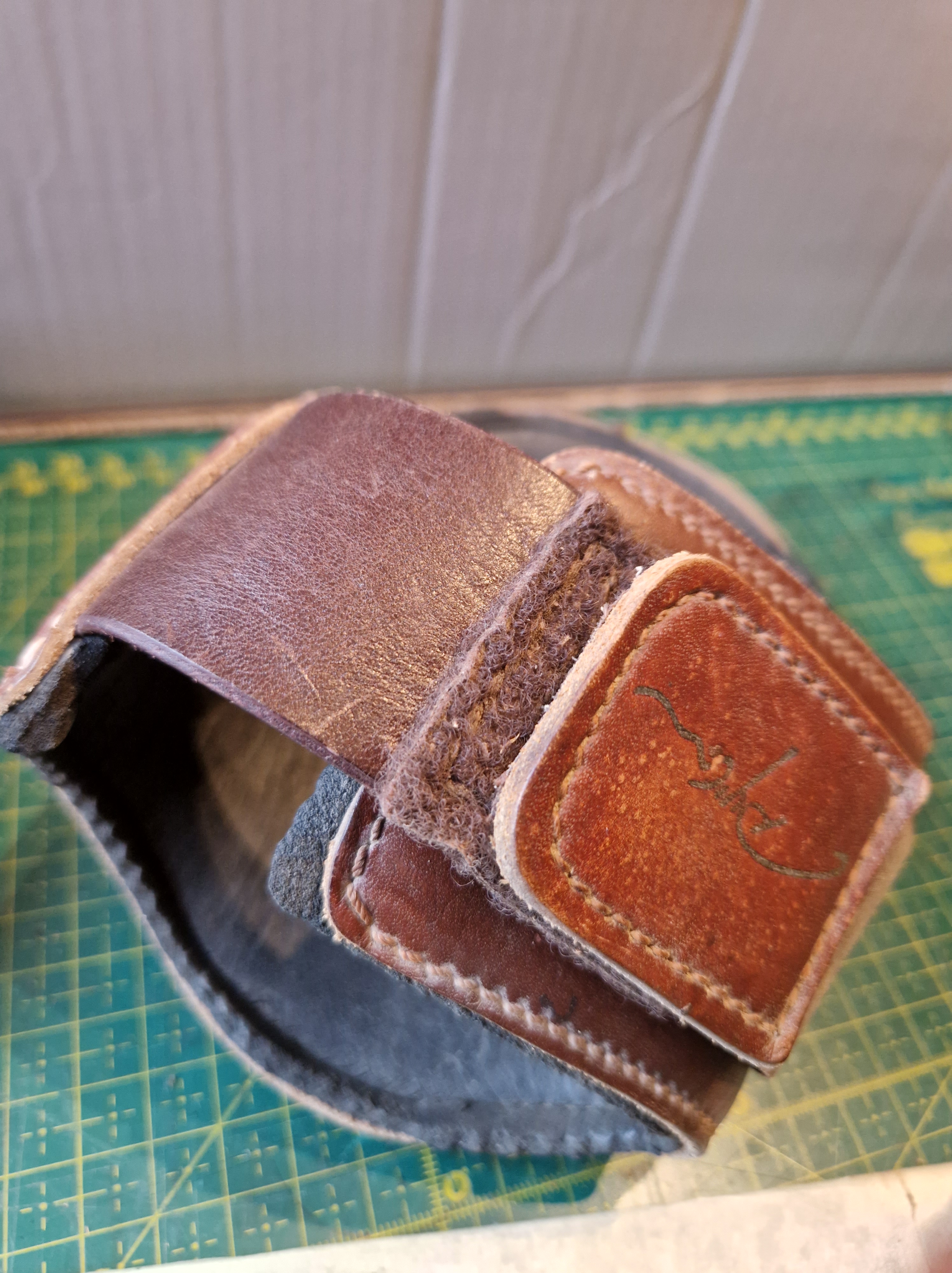 Klockarmband som gått upp i limningen. Bort med pappen och dit med enbart läder samt en söm runtom istället för lim