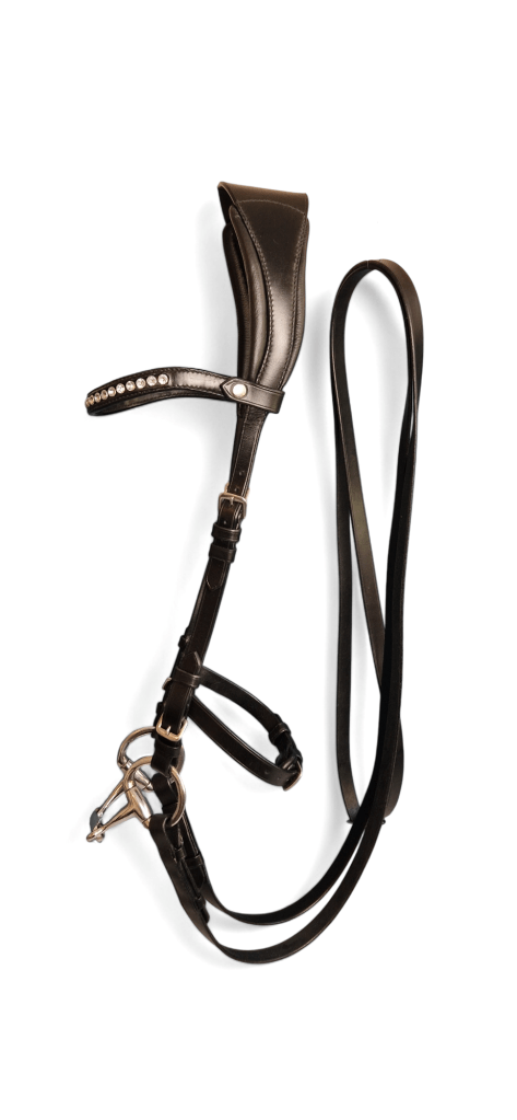 I priset ingår släta tyglar med franska hakar samt ett rakt, slätt pannband. För att komma till pannbandet på bild, klicka HÄR.