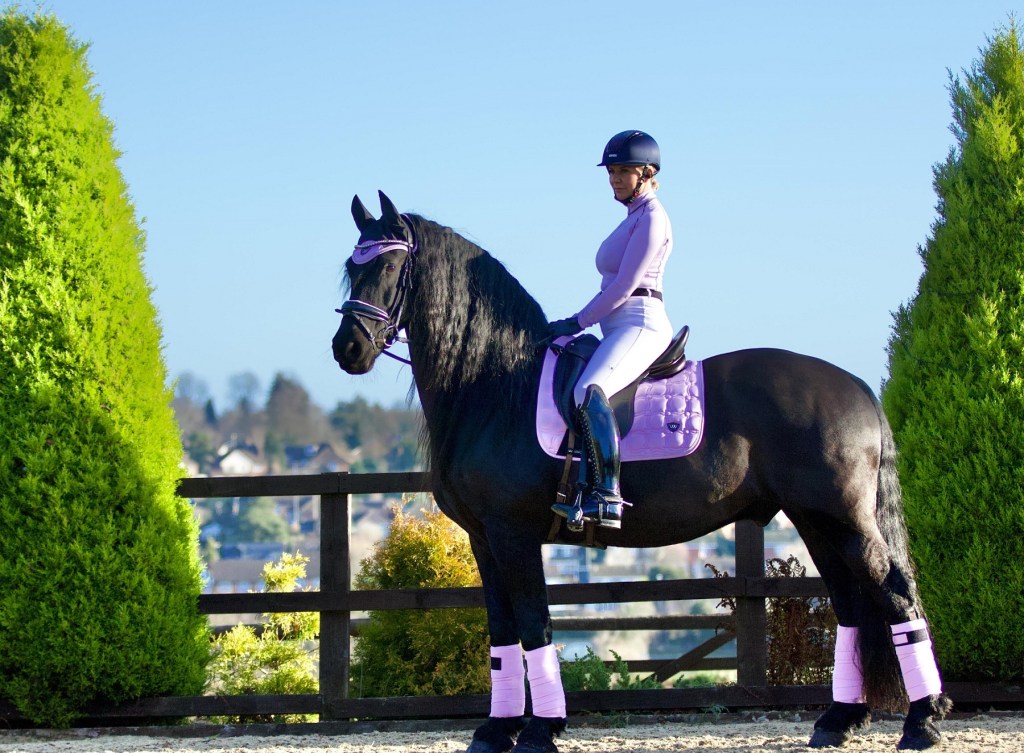 Konstmocka vid sadelgjorden för att förhindra slitage och nylonband vid sadelgjord och förbygelringar för att hålla schabraket på plats.